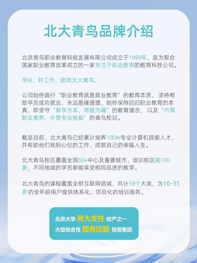 对于寻求工业机器人PLC培训的学员来说,北大青鸟一元校区凭借其多方面的优势脱颖而出。校区不仅课程设置先进、教学模式注重实战,还提供丰富的就业资源和灵活的班型选择,能满足不同学员的多样化需求。无论是渴望获取国际认证课程,还是追求互动式学习体验,北大青鸟一元校区都能为学员提供优质的培训服务,助力学员在工业自动化领域实现职业突破,是工业机器人PLC培训的不二之选。
